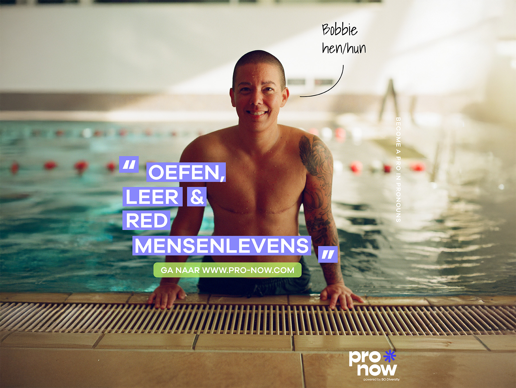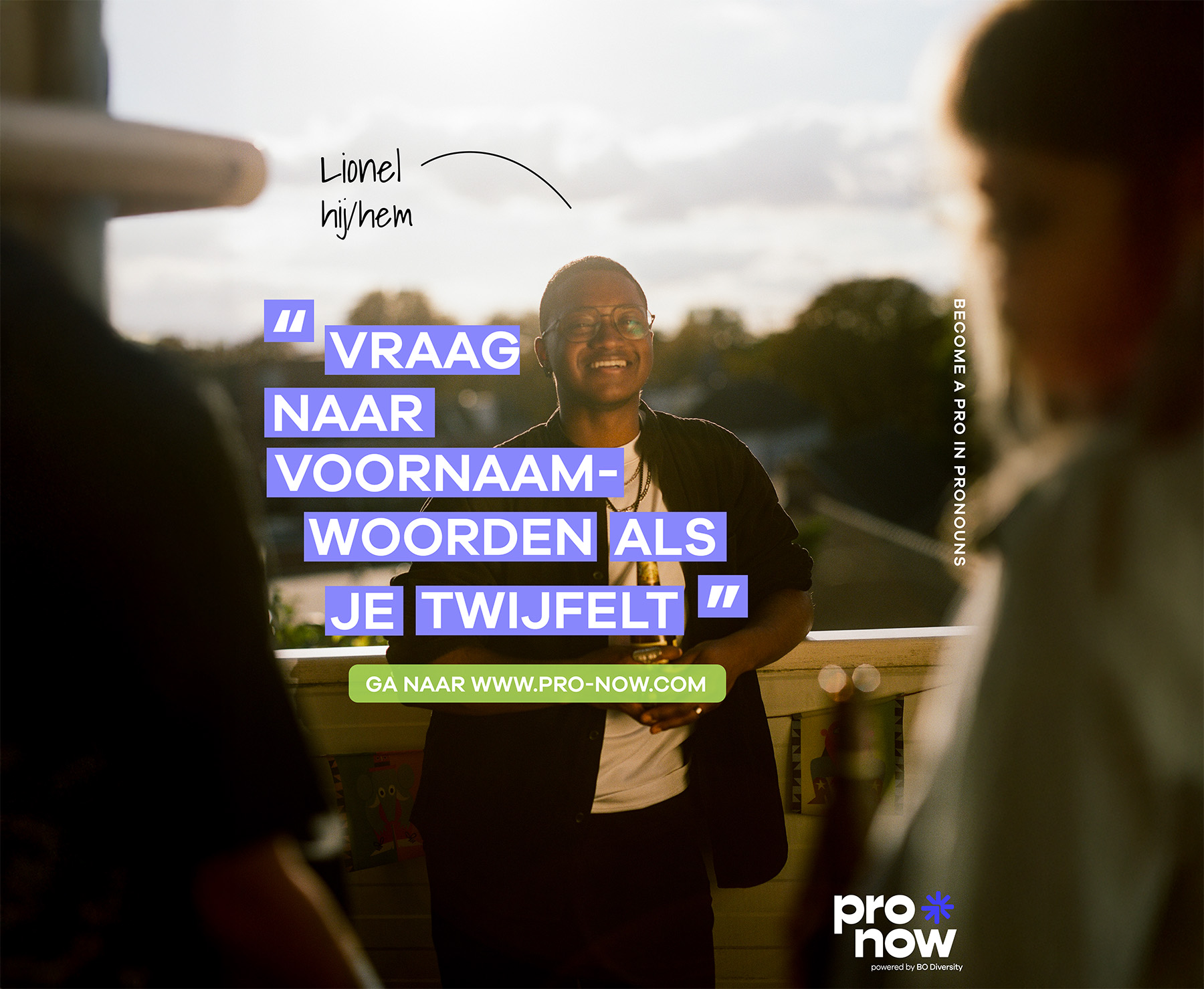 Pro-Now is een online tool waar mensen kunnen oefenen met het goed gebruiken van voornaamwoorden. Vanuit dit platform kan je vanuit de veilige omgeving van je laptop oefenen met voornaamwoorden. Voor Pro-Now ontwikkelden we een campagne video, werkte we samen divers team en met mensen uit de trans en non-binaire community.
